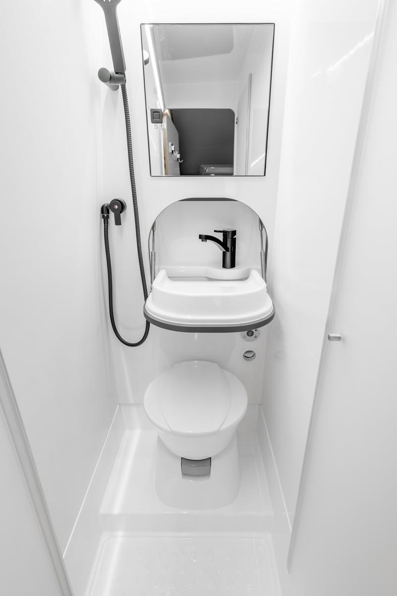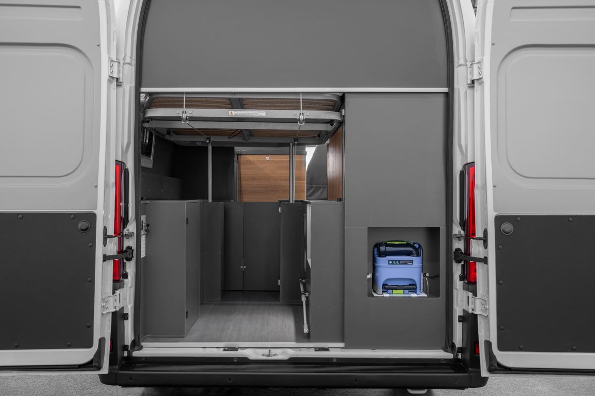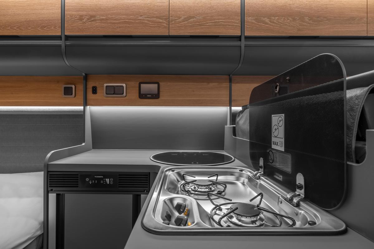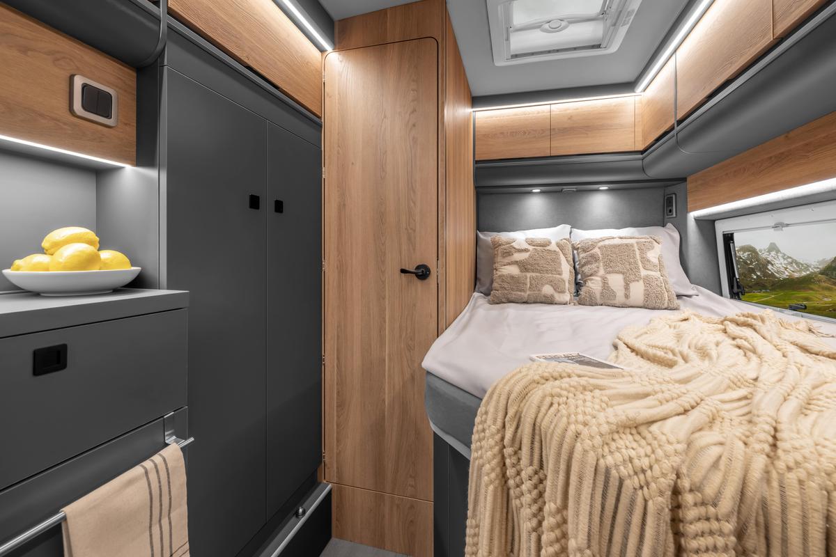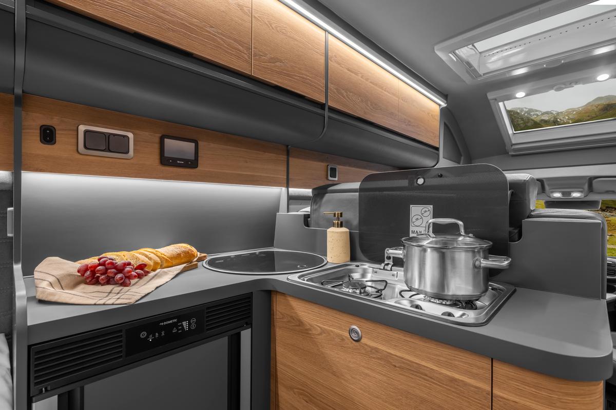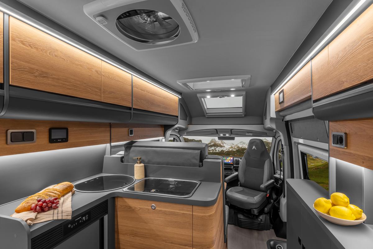 Široké a pohodlné posuvné dvere vedú do priestranného interiéru karavanu. Všetko od skriniek a skríň až po technické vybavenie je ľahko dostupné. Kuchyňa v tvare písmena L s veľkou pracovnou doskou, integrovaným sprchovacím kútom, útulnými jedálenskými a spálňovými priestormi robia z Affinity One skutočne pohodlné obytné auto.