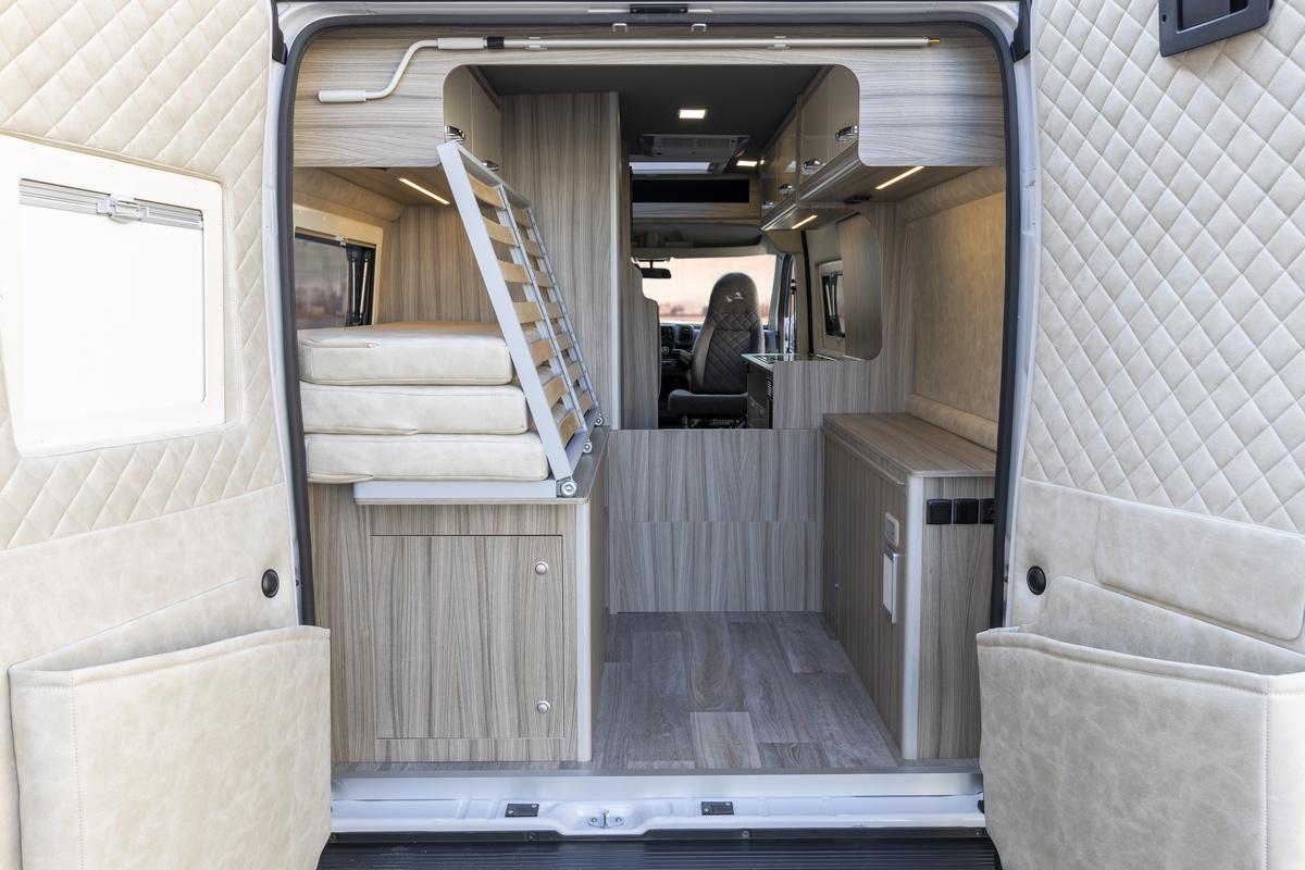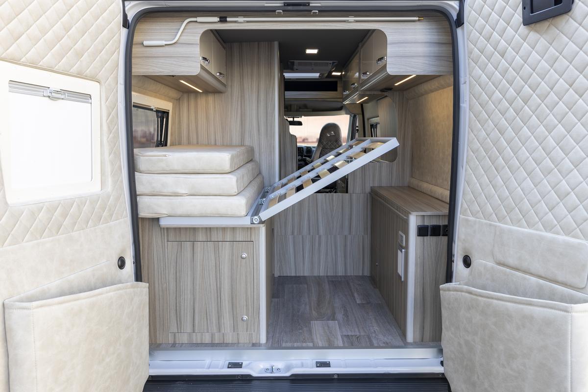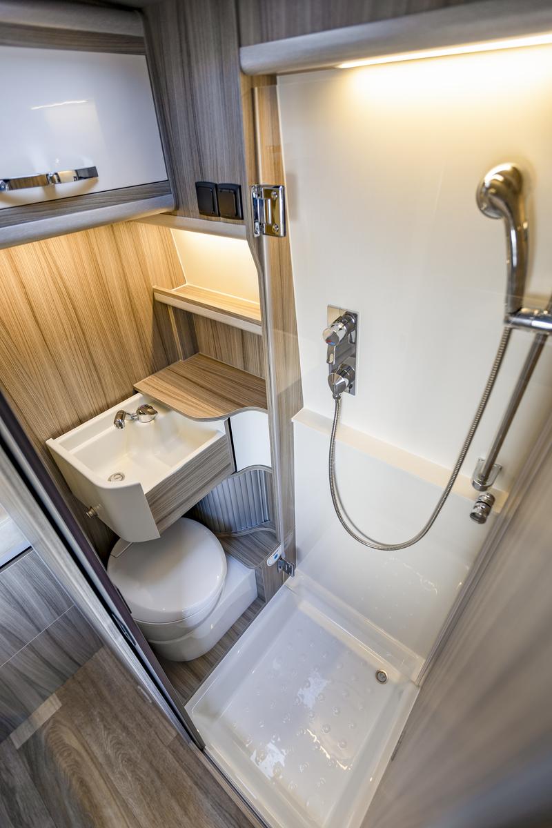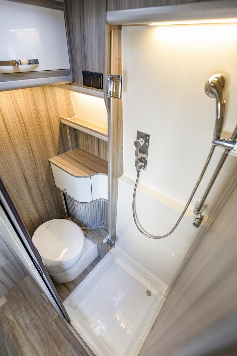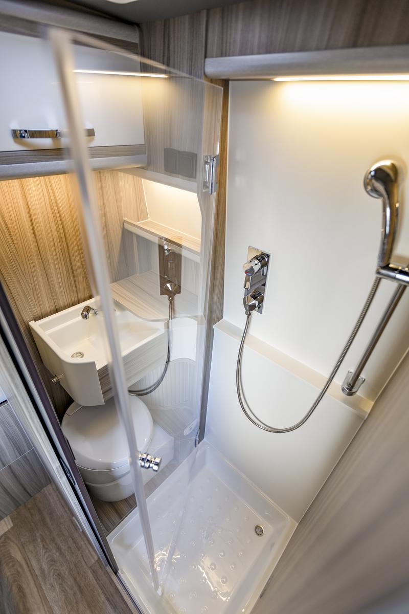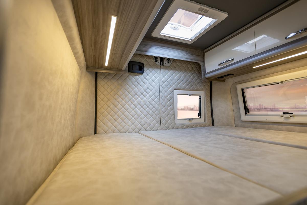 Zadné pevné priečne lôžko 1910 × 1400 mm, komfortné na spanie pre dve osoby. V interiéri množstvo úložných priestorov, LED osvetlenie, zásuvky 230 V / 12 V a USB.