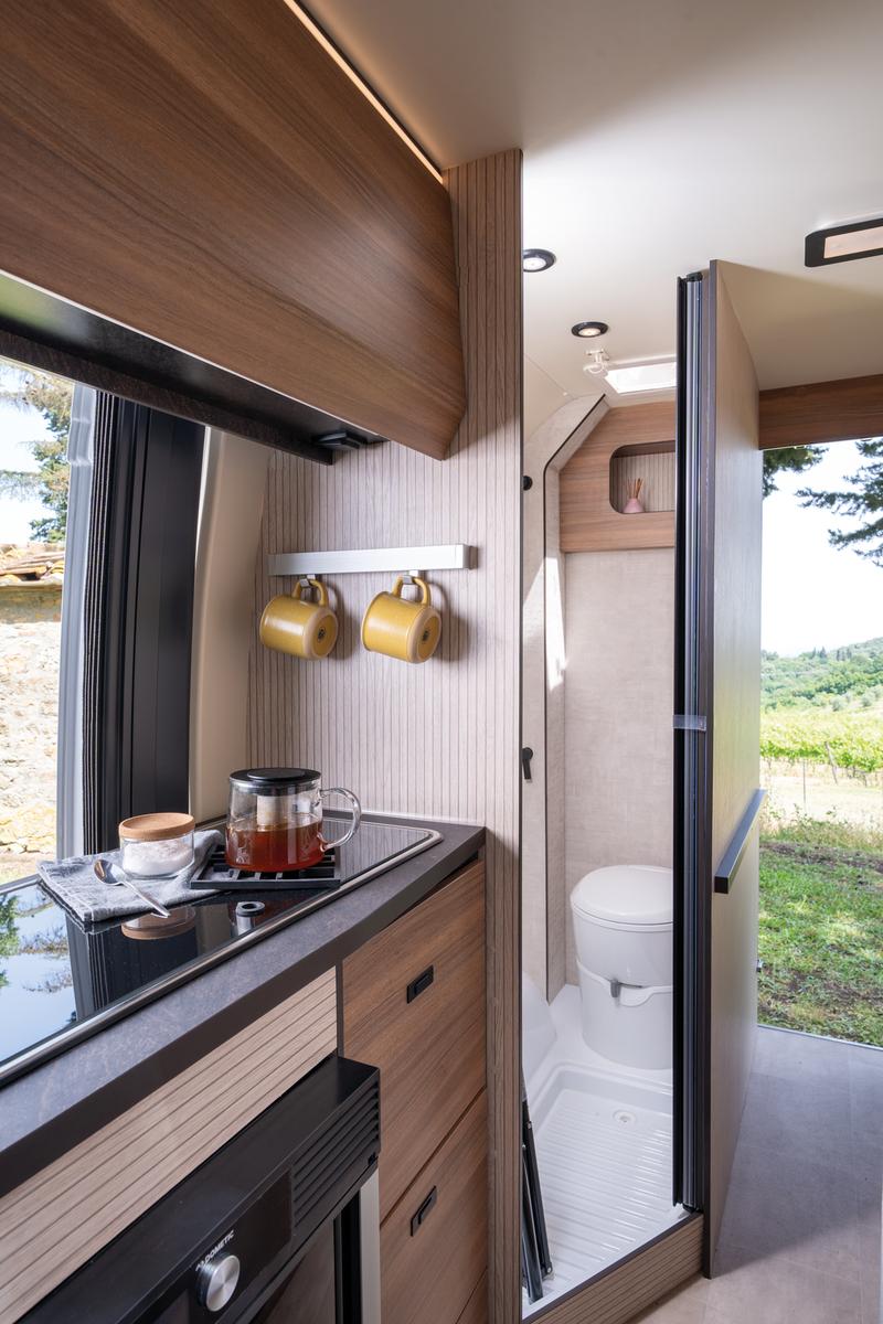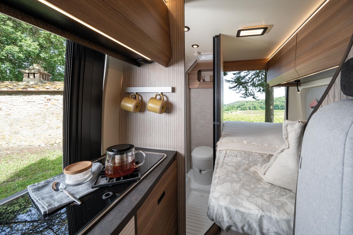 Technika: plynové kúrenie a ohrev vody Truma Combi C4, kompresorová chladnička: 70 l, kuchynská linka s drezom a plynovým sporákom s 2 horákmi, kúpeľňa s WC a integrovaným sprchovacím kútom, indikátory stavu nádrží a batérií, tlakové čerpadlo na vodu.