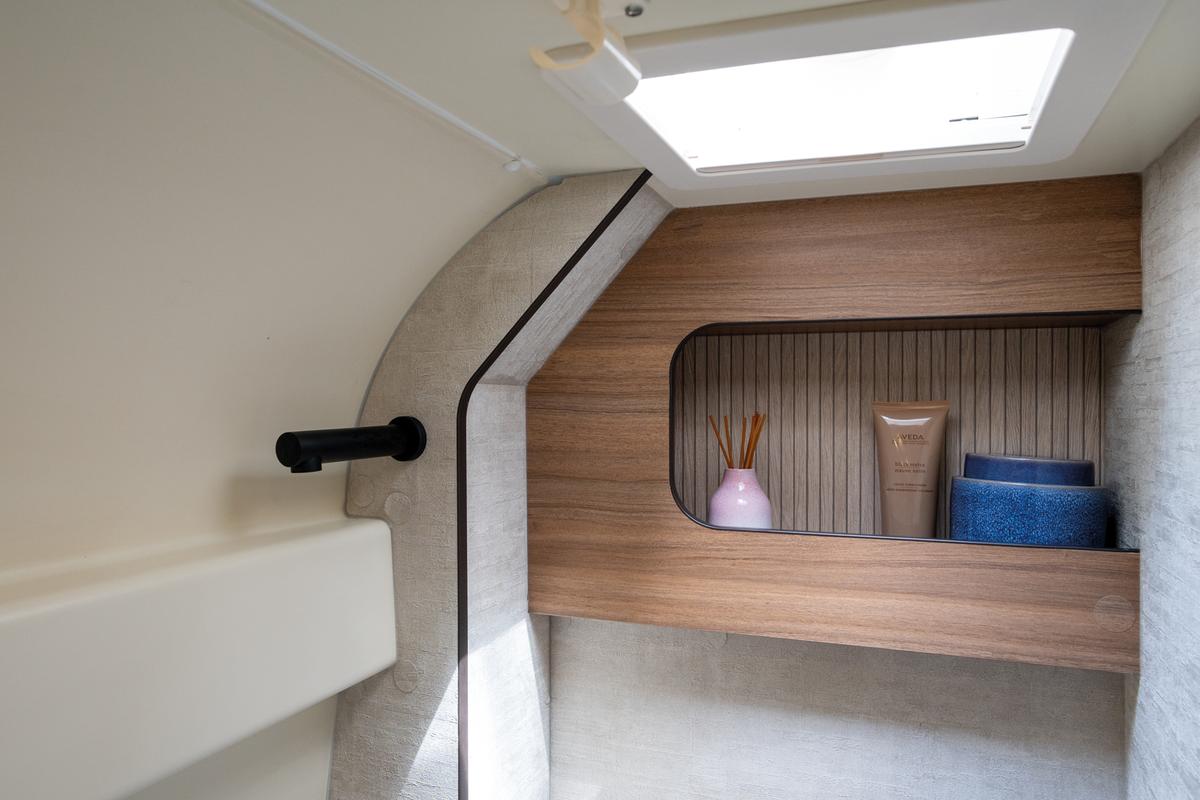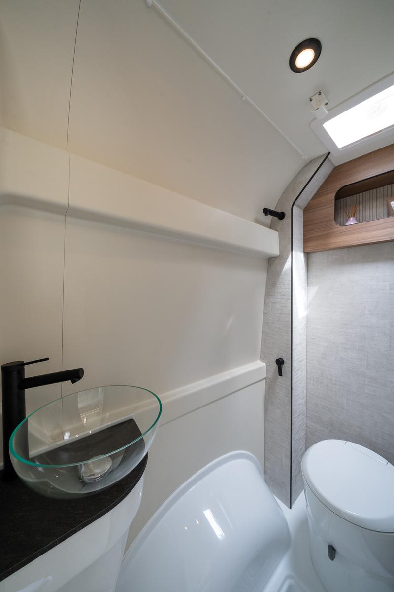 Nádrže: nádrž na čistú vodu: 20 l + 65 l, nádrž na odpadovú vodu: 90 l, skrinka na plynové fľaše: 2 x 11 kg.