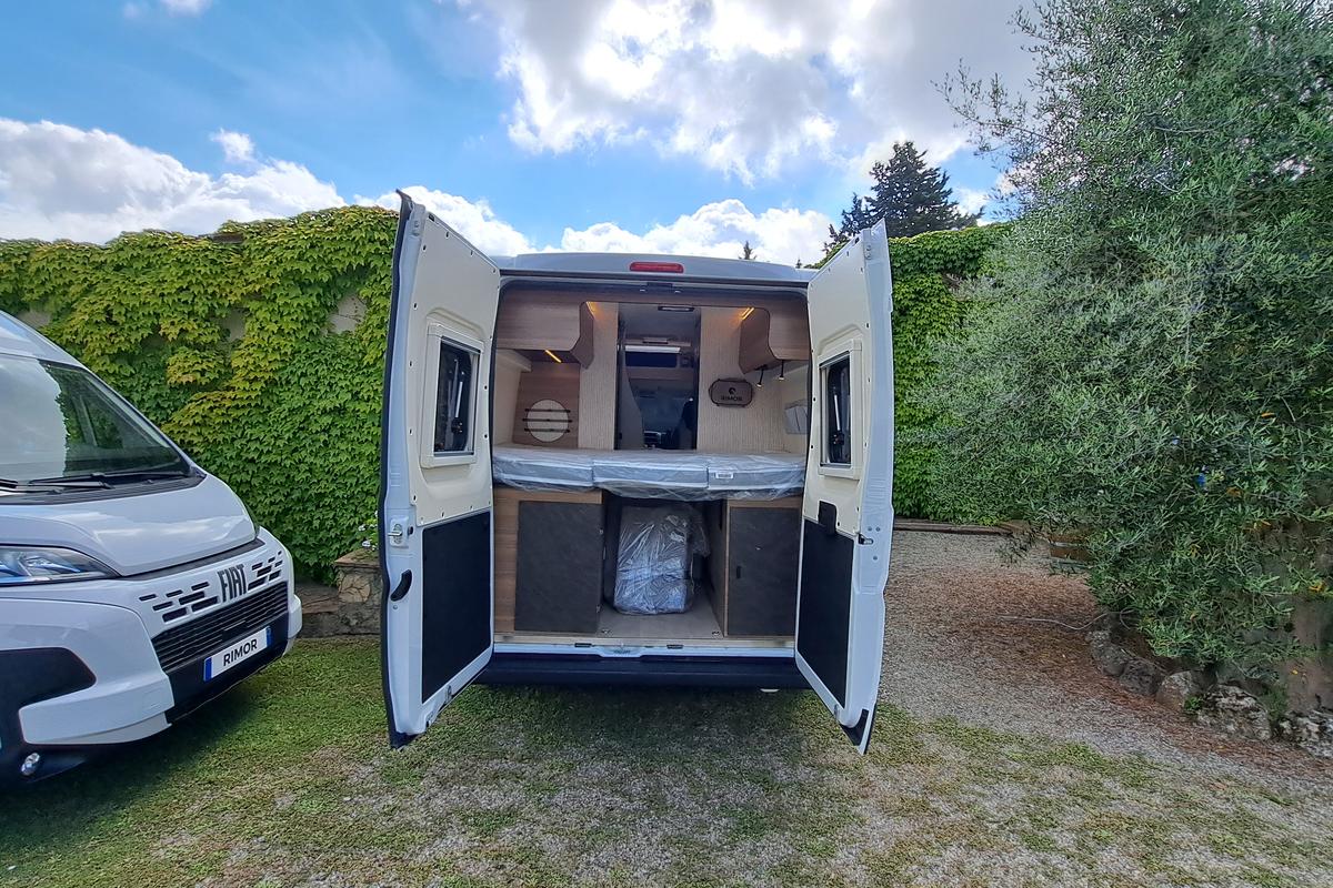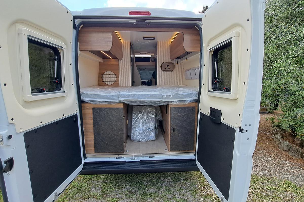 Lôžka: zadné dvojlôžko: 1,35 x 1,92 m, rozkladacie lôžko (stredová jedálenská časť): 1,15 x 1,82 m.