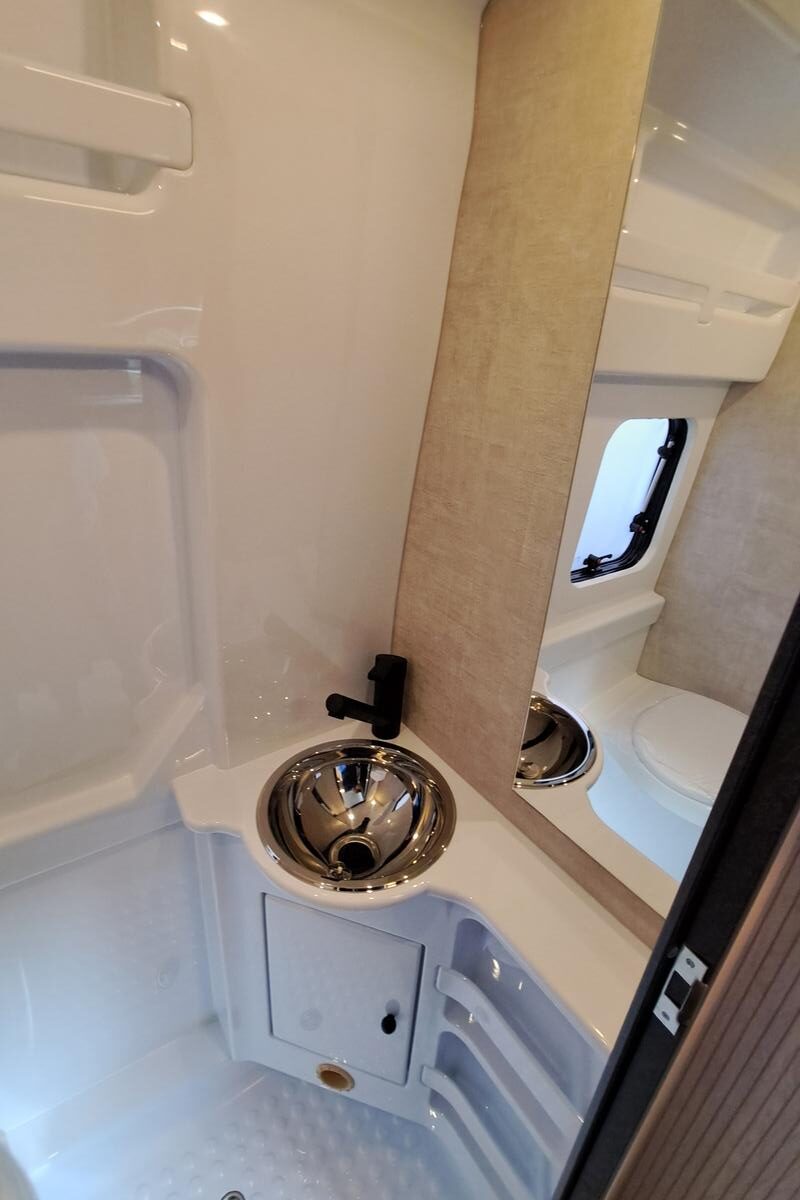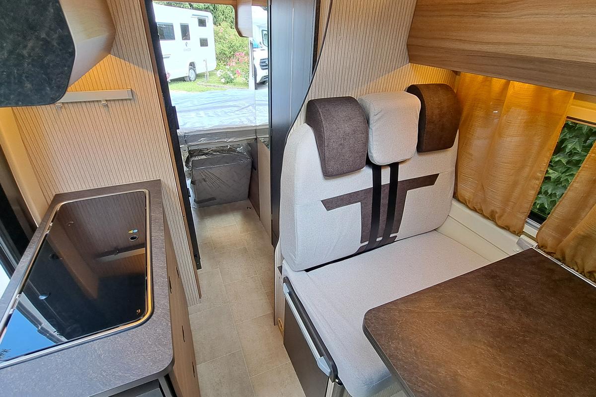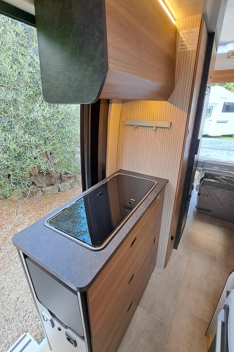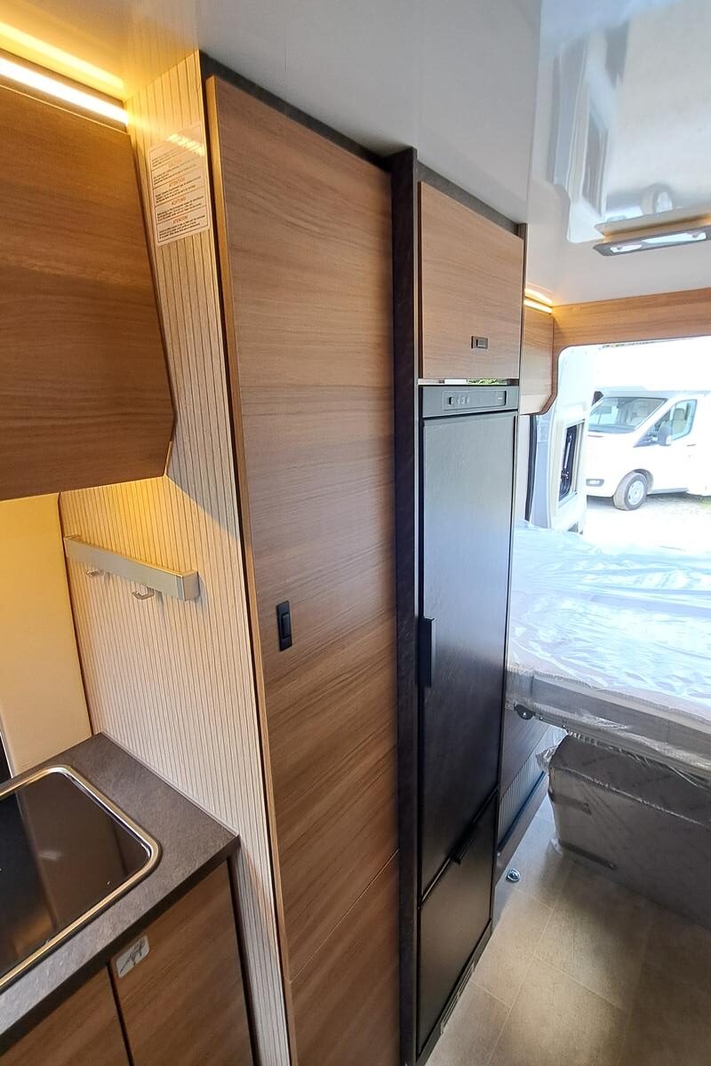 Technika: plynové kúrenie a ohrev vody Truma Combi C4, kompresorová chladnička: 90 l, kuchynská linka s drezom a plynovým sporákom s 2 horákmi, kúpeľňa s WC a integrovaným sprchovacím kútom, indikátory stavu nádrží a batérií, tlakové čerpadlo na vodu.