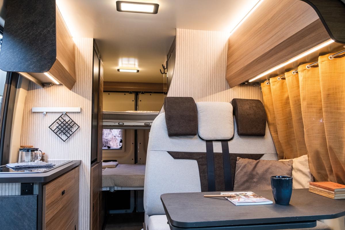 Technika: plynové kúrenie a ohrev vody Truma Combi C4, kompresorová chladnička: 90 l, kuchynská linka s drezom a plynovým sporákom s 2 horákmi, kúpeľňa s WC a integrovaným sprchovacím kútom, indikátory stavu nádrží a batérií, tlakové čerpadlo na vodu.