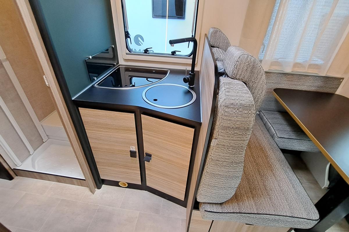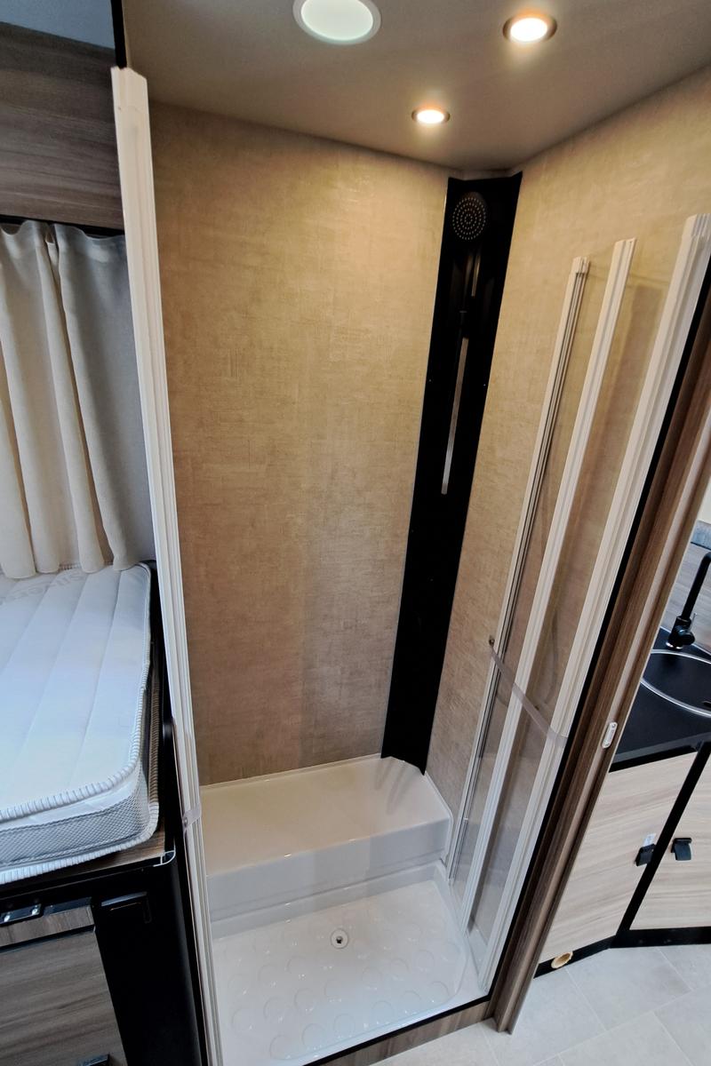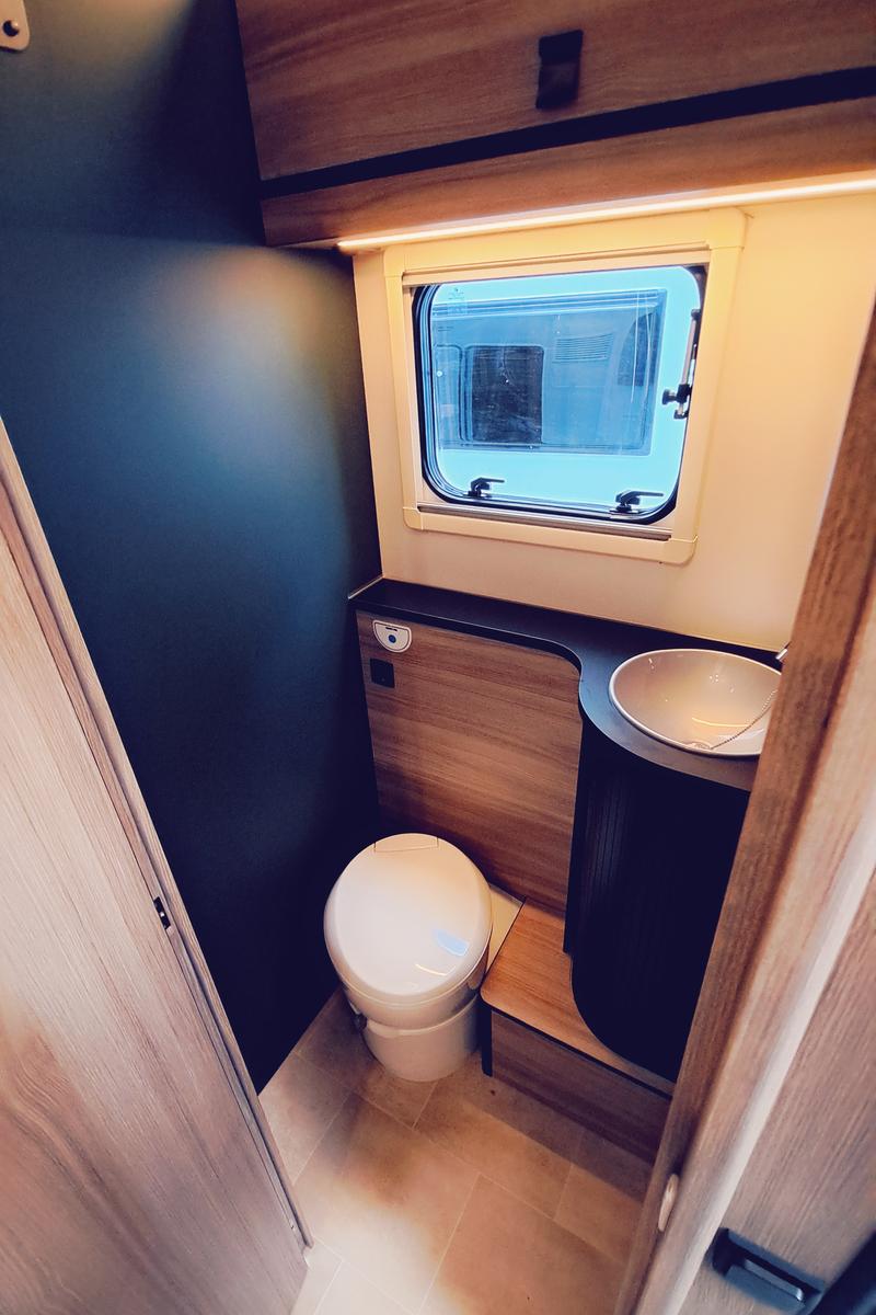 Technika: plynové kúrenie a ohrev vody Truma Combi C4, chladnička: 141 l s automatickým prepínaním napájania plyn / 230 V / 12 V, kuchynská linka s drezom a plynovým sporákom s 3 horákmi, kúpeľňa s WC, samostatný sprchovací kút, indikátory stavu nádrží a batérií, tlakové čerpadlo na vodu.