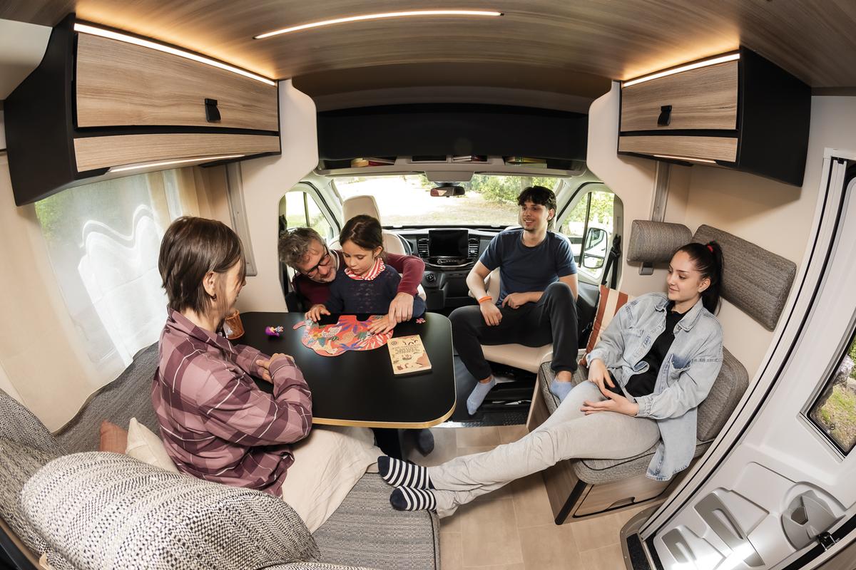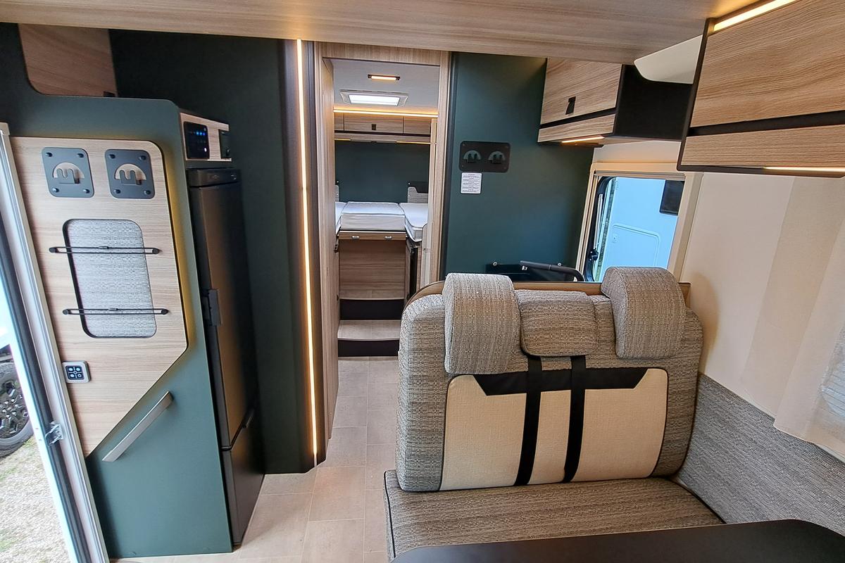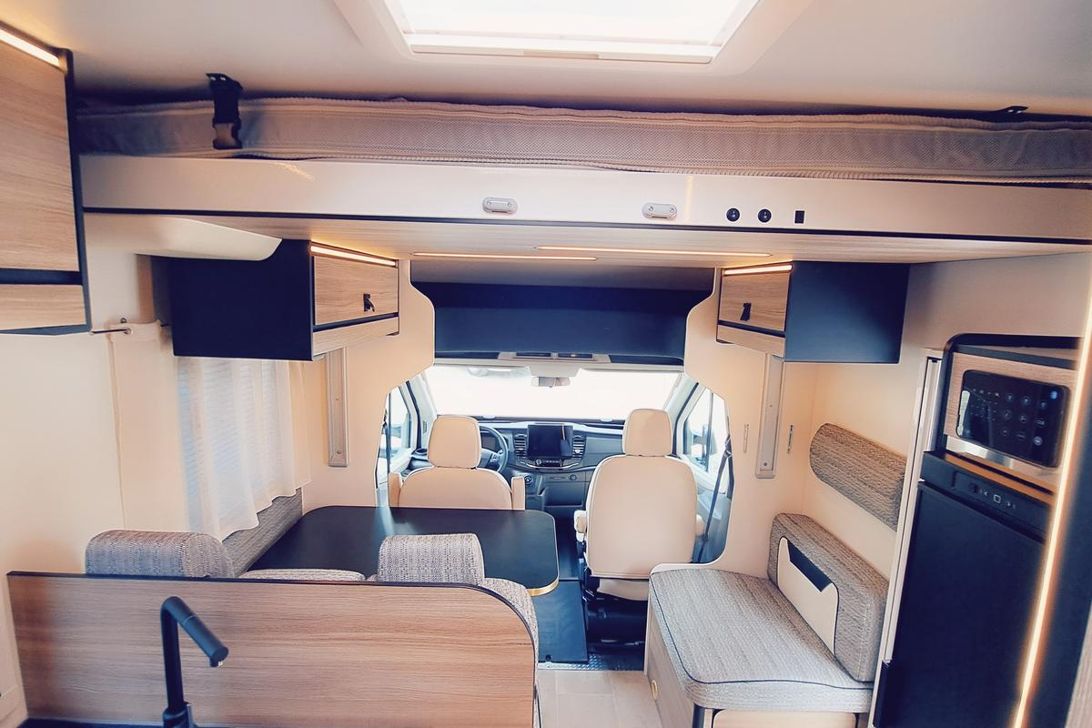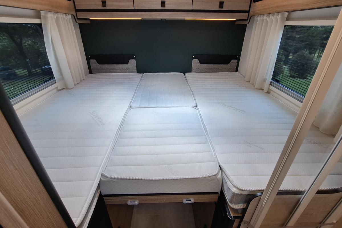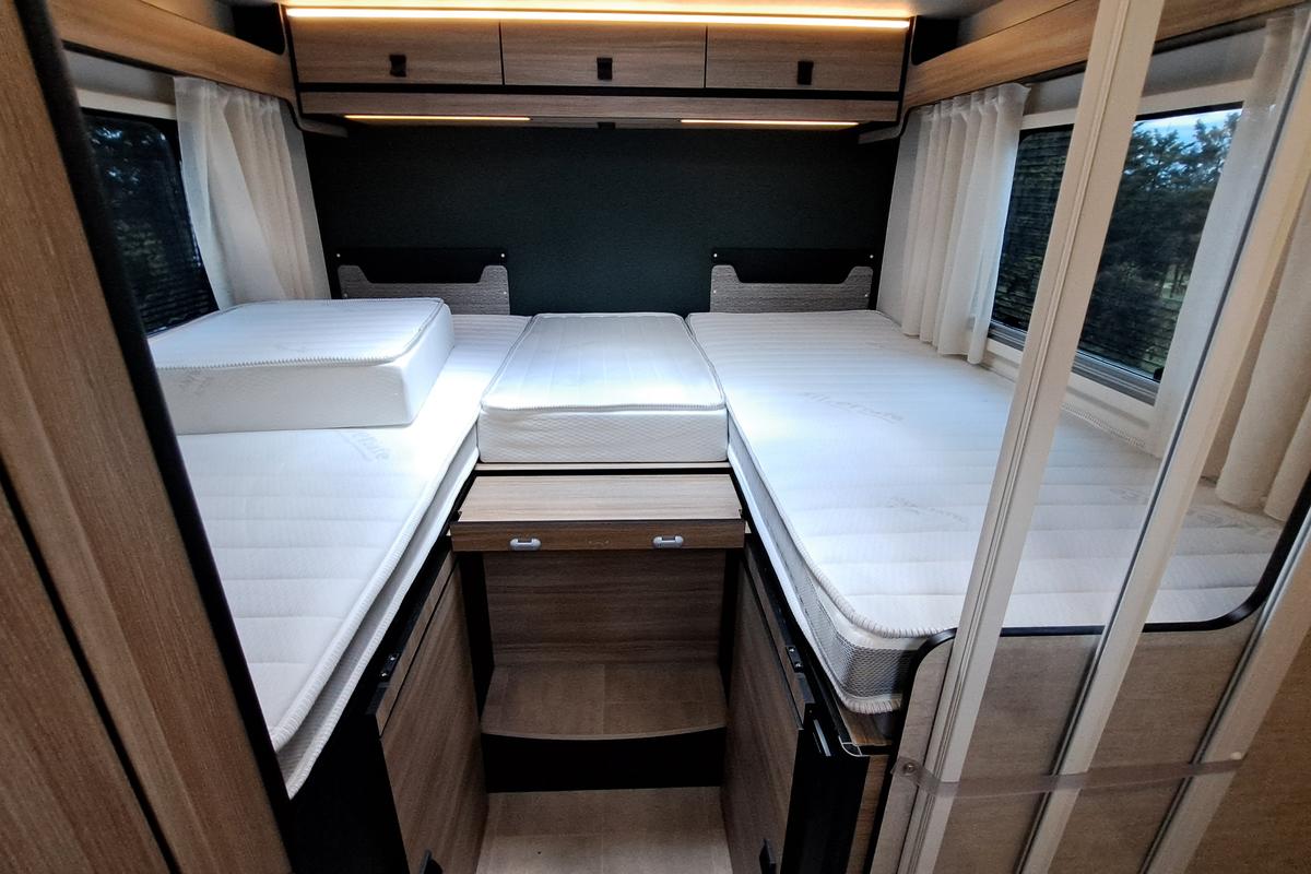 Lôžka: horné spúšťacie dvojlôžko: 1,21 x 2,00 m, zadné pozdĺžne lôžko: 0,80 x 2,02 m, druhé zadné pozdĺžne lôžko: 0,80 x 2,10 m, zadné priečne dvojlôžko po konverzií z jednolôžok: 1,40 x 2,20 m, príplatkové rozkladacie lôžko (stredová jedálenská časť): 1,04 x 2,20 m.