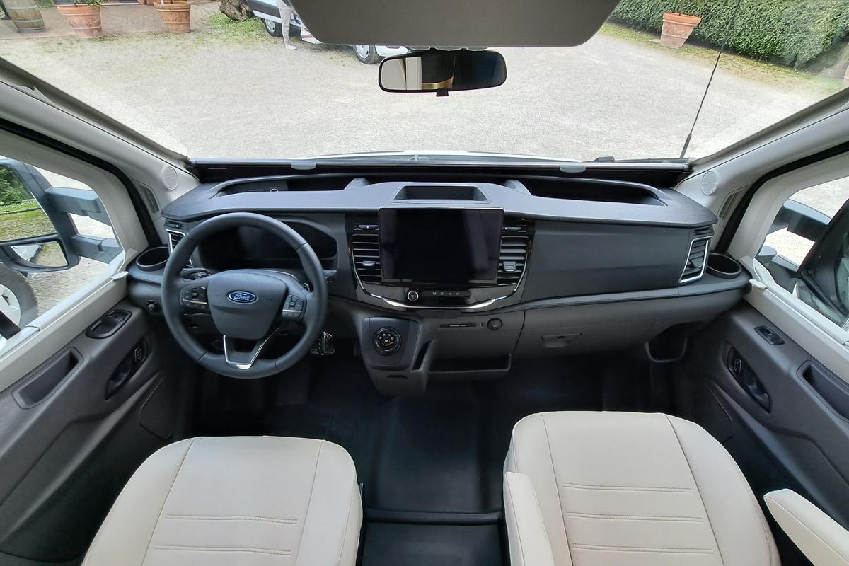 Motor: Ford Transit 2,0 l, 96 kW / 130 HP (dostupný aj 121 kW / 162 HP), tempomat, 2x airbag, centrálne zamykanie, elektrické okná, elektrické spätné zrkadlá s odmrazovaním, ABS, asistent rozjazdu do kopca, systém štart/stop, USB / MP3 / BLUETOOTH rádio s ovládaním na volante, infotainment systém s 12” obrazovkou, 8” digitálny prístrojový panel „trend“ + úložná zásuvka s uzamykaním, vnútorné obloženie „trend“, rýchly systém odmrazovania čelného skla, automatické stierače so senzorom dažďa, elektronická ručná brzda, asistent udržania jazdného pruhu + detekcia opustenia pruhu, rozpoznávanie dopravných značiek s povolenou rýchlosťou , predné parkovacie senzory, zadná parkovacia kamera, automatické svetlá, asistent pre mŕtvy uhol a brzdový asistent pre chodcov a cyklistov, predné sedadlá otočné s opierkami rúk.