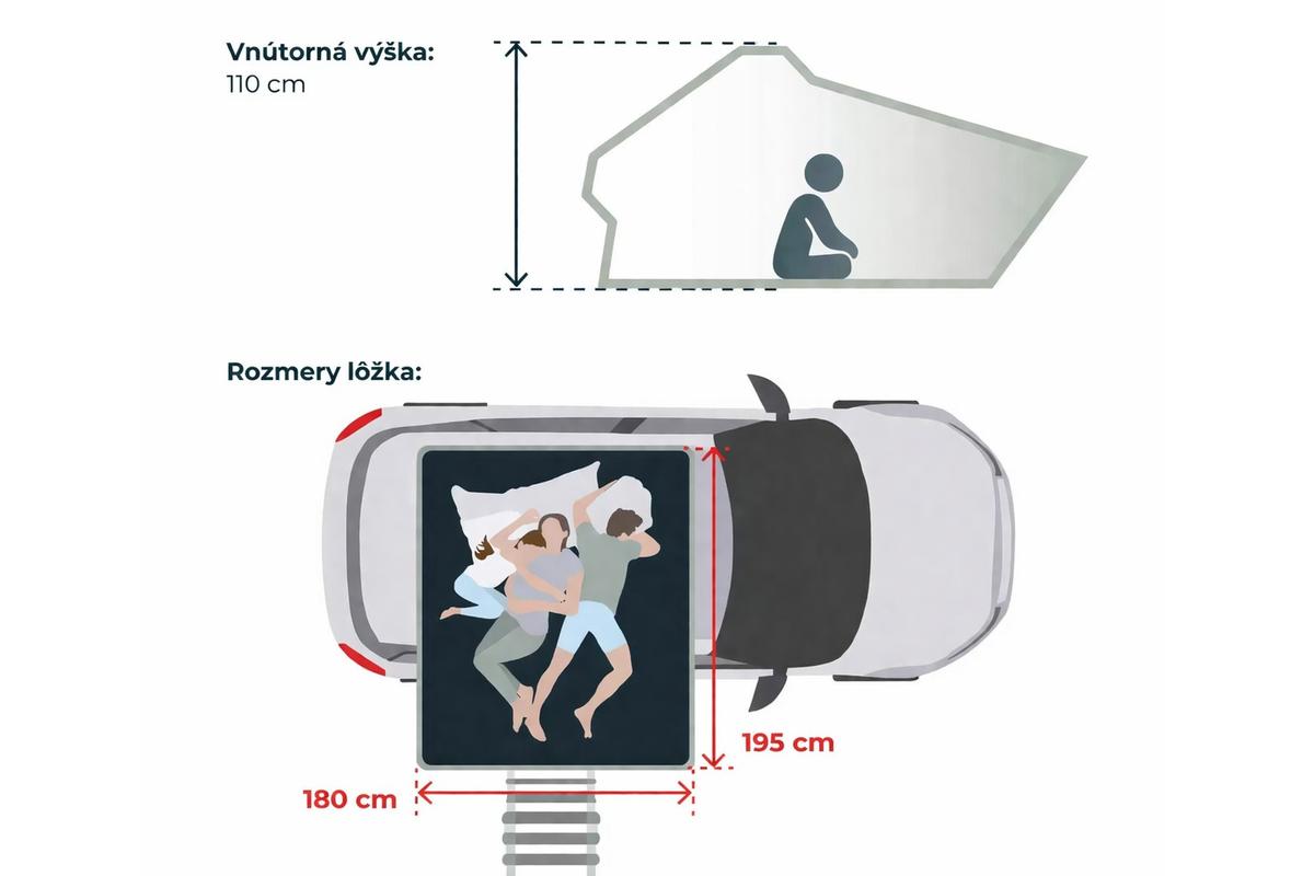 • Spacia plocha: 195 × 180 × 110 cm (max. vnútorná výška)